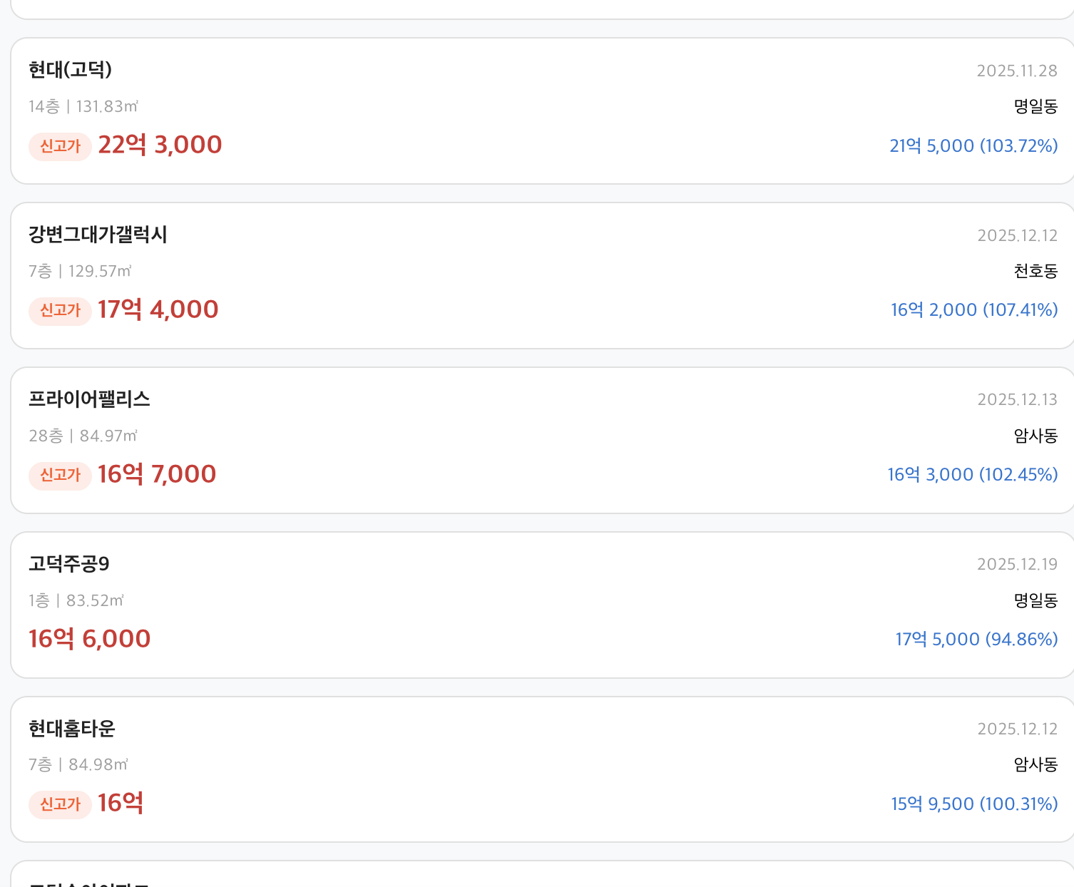 - 강동구 (신고가 14건)