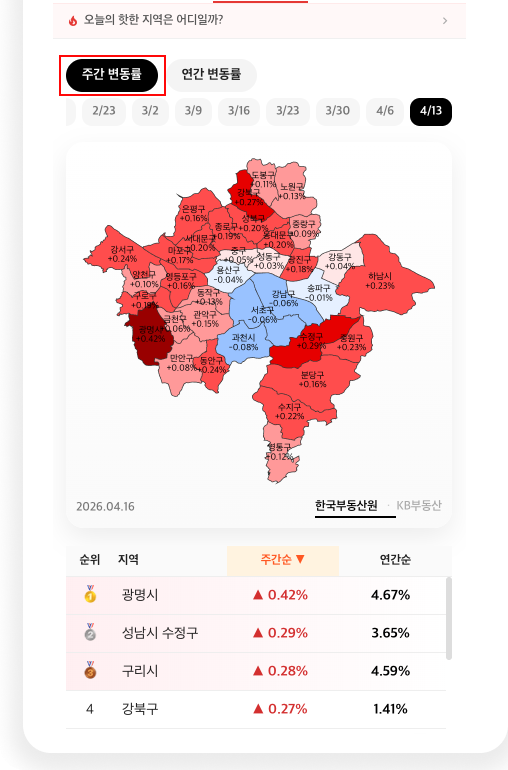 #아파트실거래가 #부동산시세 #수도권아파트 #용인수지아파트 #하남아파트시세 #강남아파트동향 #부동산투자 #신고가현황 #앱티 #APTIE #주간매매변동률 1