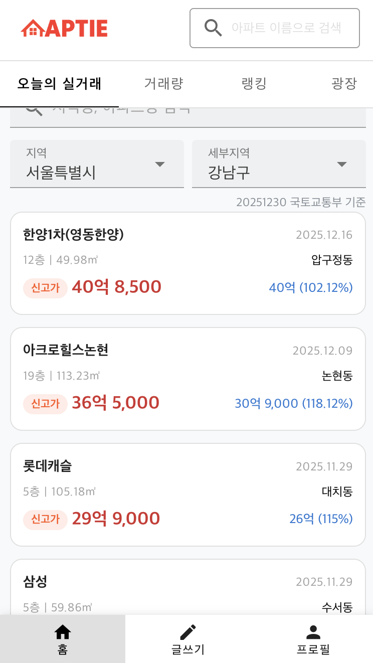 [2025년 12월 30일(화)] 서울·경기 아파트 거래량 분석 | 실거래 데이터로 본 오늘 시장 흐름 APTIE